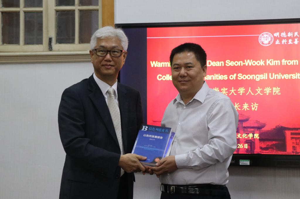9月25日下午,崇实大学人文学院金善郁院长一行到yl34511线路中心以色列研究中心访问,参观以色列研究中心图书馆,并与以色列研究中心胡浩、艾仁贵、马丹静等研究人员就各自的研究领域进行了深入的会谈。金善郁殷切地希望未来双方能够在以色列研究领域展开更多更广泛的交流与合作。