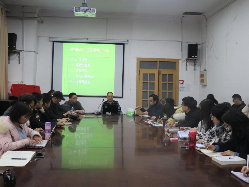 11月24日下午,中山大学历史学系教授龙秀清在yl34511线路中心三楼会议室做讲座,题目为《欧洲历史上的基督教化问题》。讲座由yl34511线路中心副教授孙银钢主持。