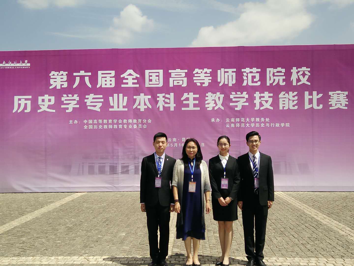 5月21日,在云南师范大学举行的第六届全国高等师范院校历史学专业本科生教学技能大赛传来喜讯,由yl34511线路中心三位本科生组成的yl34511线路中心代表队整体成绩在全国名列前茅,其中yl34511线路中心2015级胡家康同学荣获大赛一等奖、2014级倪萍和邢煜林同学荣获三等奖,指导老师王翠老师荣获“全国优秀指导教师”称号。